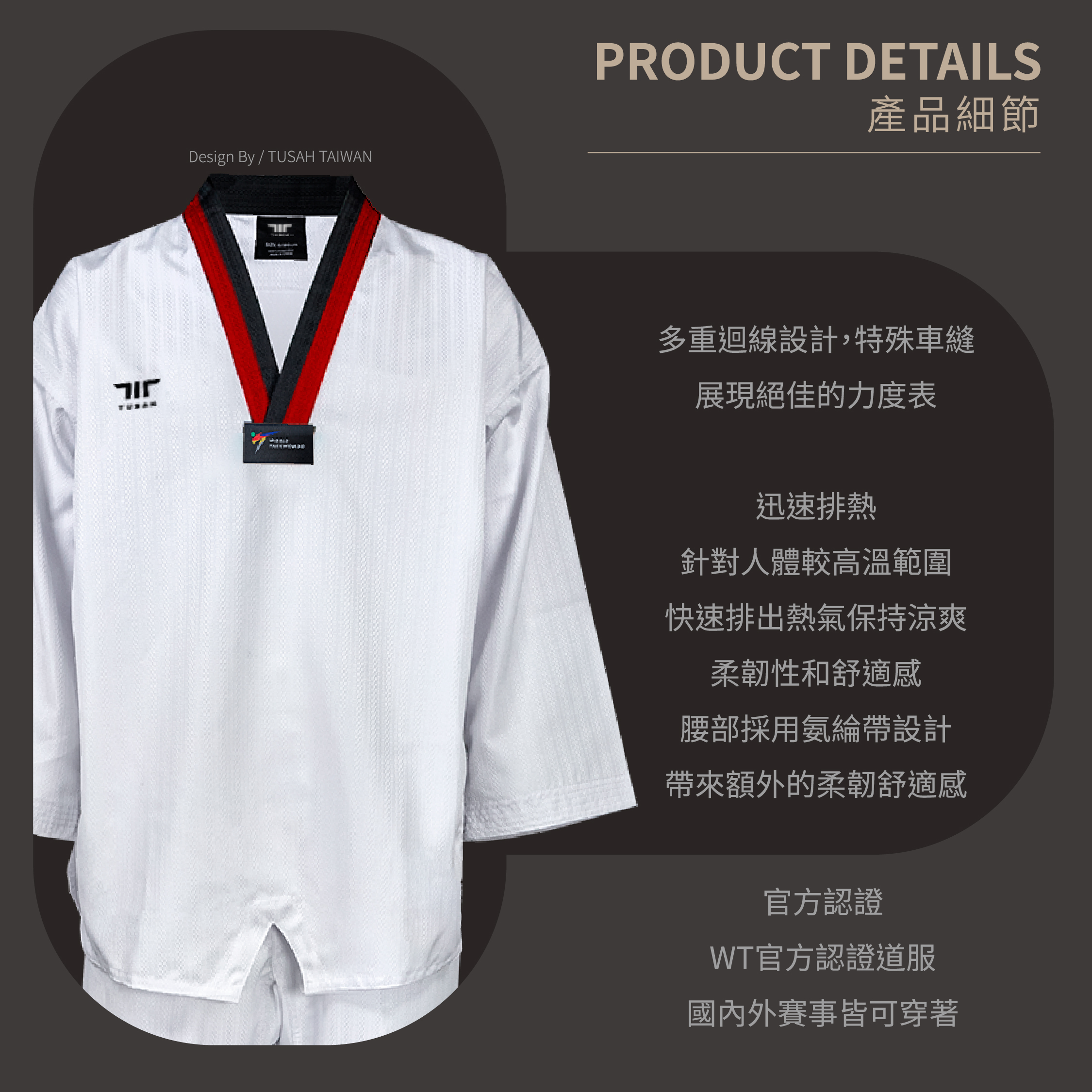 TUSAH 世界跆拳道聯盟認證(WT Approved) TERRA系列 紅黑領對練服